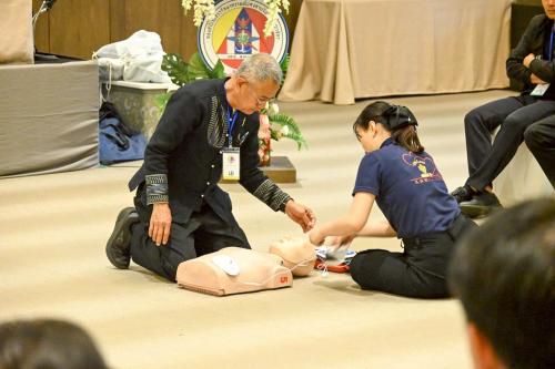 ในช่วงบ่าย มีการฝึกอบรมการช่วยชีวิตขั้นพื้นฐานและการใช้เครื่องกระตุกหัวใจไฟฟ้าอัตโนมัติ (CPR & AED) โดยทีมวิทยากรจากสำนักงานสาธารณสุขจังหวัดสระแก้ว เพื่อเพิ่มทักษะและความพร้อมในการรับมือสถานการณ์ฉุกเฉินให้แก่ผู้เข้าร่วมกิจกรรม