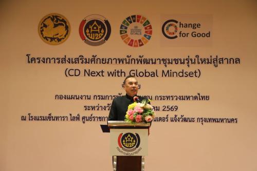พิธีเปิดโครงการฯ จัดขึ้นเมื่อวันพุธที่ 4 มีนาคม 2569 โดยนายสยาม ศิริมงคล อธิบดีกรมการพัฒนาชุมชน มอบหมายให้ นายวรงค์ แสงเมือง รองอธิบดีกรมการพัฒนาชุมชน เป็นประธานเปิดโครงการ "ส่งเสริมศักยภาพนักพัฒนาชุมชนรุ่นใหม่สู่สากล (CD Next with Global Mindset)" โดยมีนายนพรัตน์ ธำรงทรัพย์ ผู้อำนวยการกองแผน กล่าวรายงานวัตถุประสงค์การจัดโครงการฯ