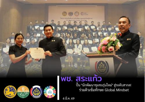 พช.สระแก้ว ปั้น "นักพัฒนาชุมชนรุ่นใหม่" สู่ระดับสากล! ร่วมติวเข้มทักษะ Global Mindset ขับเคลื่อนงานชุมชนไทยสู่เวทีอาเซียน