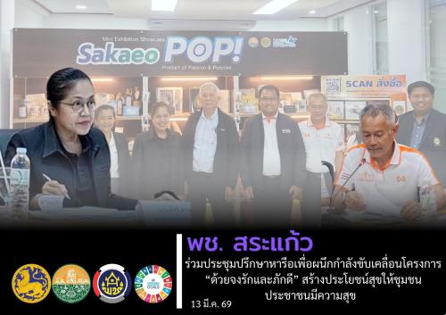 นายปริญญา โพธิสัตย์ ผู้ว่าราชการจังหวัดสระแก้ว มอบหมาย ดร.พัชรี ศาลาศิลป์ รองผู้ว่าราชการจังหวัดสระแก้ว ร่วมกับคณะผู้ดำเนินโครงการ “ด้วยจงรักและภักดี” สร้างประโยชน์สุขให้ชุมชน ประชาชนมีความสุข จำนวน ๕ ท่าน ประกอบด้วย ๑. คุณอภัย จันทนจุลกะ ที่ปรึกษา บริษัทไทยเบฟเวอเรจ จำกัด (มหาชน) ๒. คุณธนาภรณ์ พรมสุวรรณ ที่ปรึกษา บริษัทไทยเบฟเวอเรจ จำกัด (มหาชน) ๓. คุณธารทิพย์ ศิรินุพงศ์ ผู้บริหาร บริษัทไทยเบฟเวอเรจ จำกัด (มหาชน) ๔. คุณภัทรพล ปฐมมหาธนเดช คณะจัดการโครงการฯ และ ๕. คุณปุณยนุช ณ นคร คณะจัดการโครงการฯ ประชุมชี้แจงโครงการฯ และหารือแนวทางการทำงานที่จะช่วยให้เกิดความร่วมมือกับประชาชนในชุมชน ในวันศุกร์ที่ ๑๓ มีนาคม ๒๕๖๙ เวลา ๑๐.๓๐ น. ณ ห้องประชุมบูรพา ชั้น ๔ ศาลากลางจังหวัดสระแก้ว