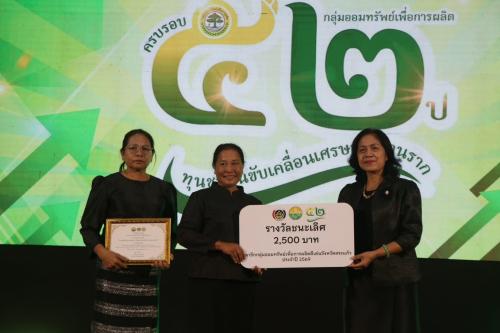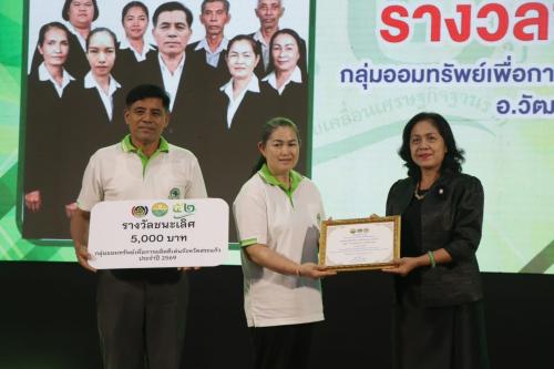รางวัลชนะเลิศ พร้อมเงินรางวัล 5,000 บาท ได้แก่ กลุ่มออมทรัพย์เพื่อการผลิตบ้านระเบาะหูกวาง หมู่ที่ 6 ตำบลช่องกุ่ม อำเภอวัฒนานคร จังหวัดสระแก้ว